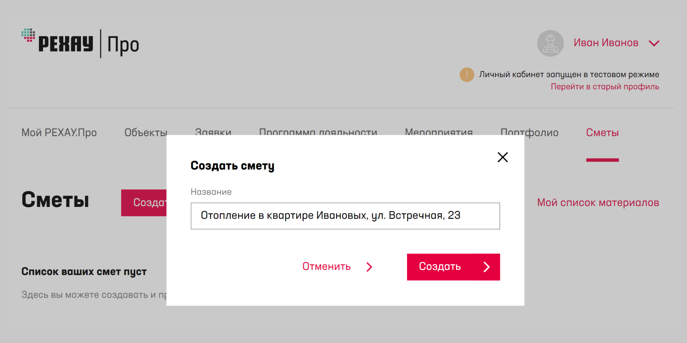 Вы можете создавать сметы и вносить в них изменения из личного кабинета монтажника на портале РЕХАУ.Про.