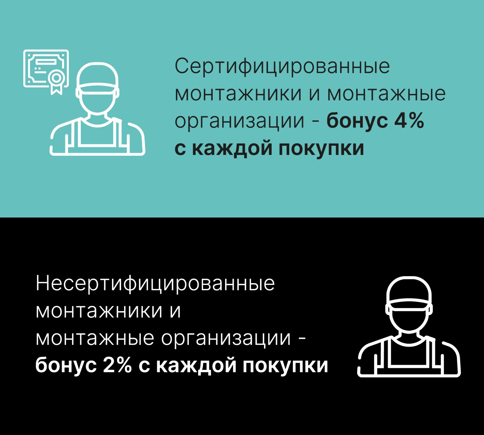 В программе могут принять участие как сертифицированные, так и несертифицированные монтажники. Для несертифицированных монтажников R.Bonus составляет 2% от покупки, для сертифицированных — 4%. Но и это не предел: члены клуба монтажников РЕХАУрегулярно участвуют в мероприятиях и акциях, в результате которых процент R.Bonus увеличивается. Покупайте инженерные системы РЕХАУв официальных точках — это выгодно!