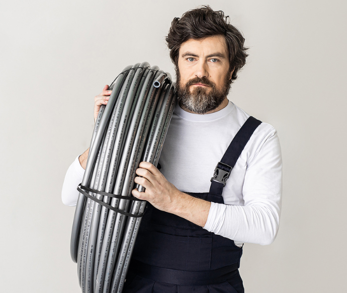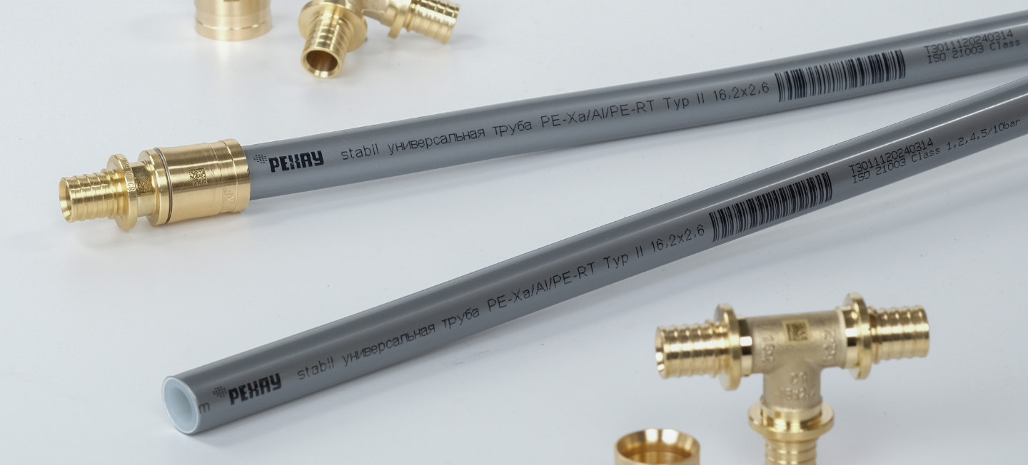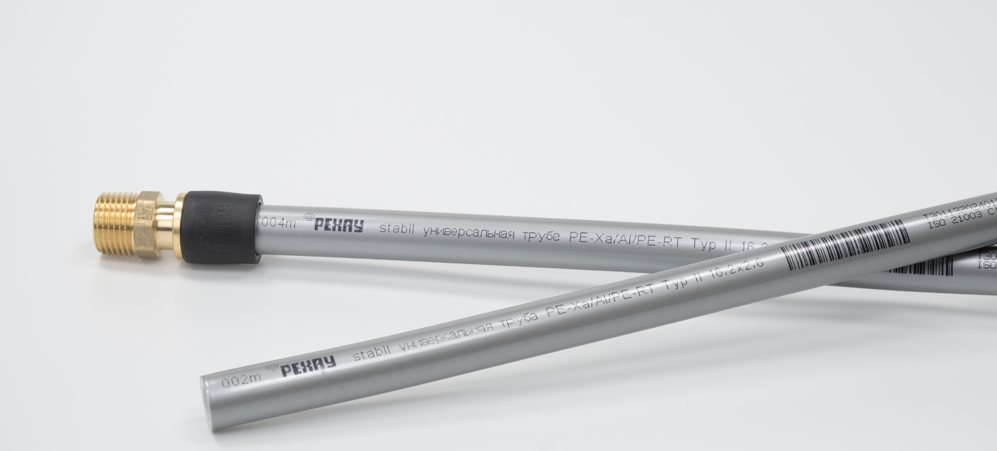 Трубы STABIL состоят из самонесущего внутреннего слоя сшитого полиэтилена, слоя пластичного алюминия и покрыты снаружи защитным слоем из PE-RT type 2 — такое сочетание делает изделия прочными и устойчивыми к перепадам температур. Они отлично выдерживают условия открытой прокладки. Вы также можете монтировать их скрыто: прокладывать в строительных конструкциях или заливать стяжкой в конструкции пола.